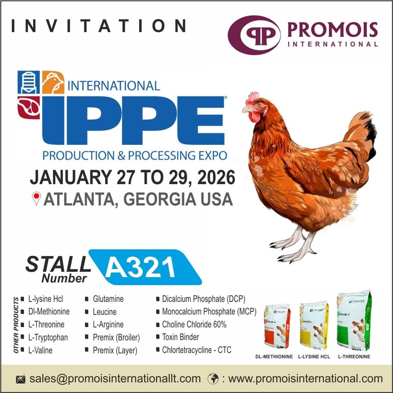 Discover our complete range of high-quality feed additives, amino acids, and nutrition solutions designed to enhance poultry and animal performance.